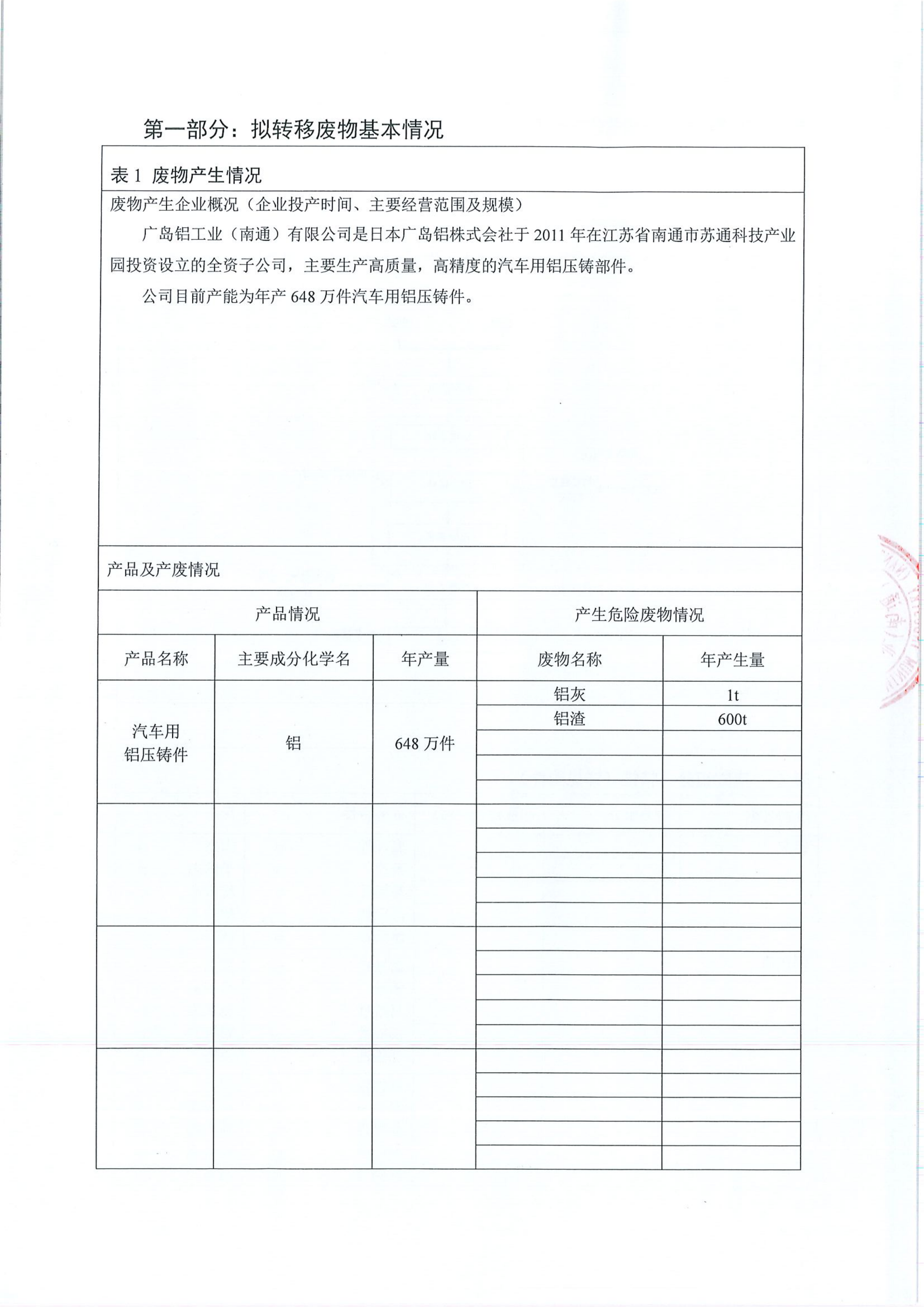 廣島鋁工業(yè)(南通)有限公司固體(危險廢物)廢物跨省轉移實施方案(2026年計劃)